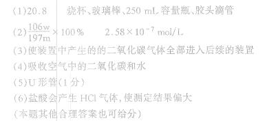 (5)除已理的agNa2CO3样品外,实验中还应测定的数据是?处(填图中仪器的名称)装置实验前后的质量差。