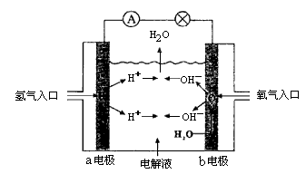 1、选择题 下图为氢氧燃料电池原理示意图,按照此图的提示,下列叙述不正确的是