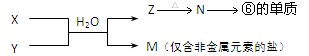 (4)、由表中元素形成的物质X、Y、Z、M、N可发生以下反应:?