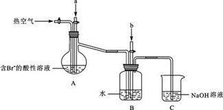 ③A装置中通入a气体时,反应的离子方程式表示为:?. ④A装置中通入a气体一段时间后, 停止通入,改通热空气。通入热空气的目的是:?. ⑤反应过程中,B装置中产生的两种主要阴离子为?. ⑥C装置的作用是?。