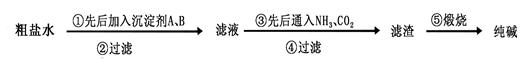 完成下列填空: (1)粗盐水(含杂质离子Mg2+、Ca2+),加入沉淀剂A、B除杂质(A来源于石灰窑厂),则沉淀剂B 的化学式为?。 (2)实验室模拟由滤液制备滤渣的装置如下: