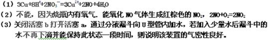 (2)实验装置甲能否证明铜和稀硝酸反应的产物是NO气体 (填:“能”或“不能”)请阐述理由(包括化学方程式)是