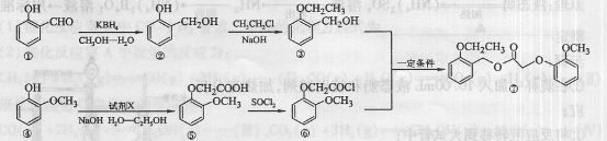 (2)③与⑥生成⑦的反应类型是?,④—⑤转化的另一产物是。HCl,则试剂X是?。