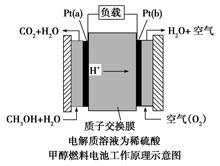 参考答案:B 本题解析:原电池的形成条件之一是有自发的氧化还原反应发生,而自发的氧化还原反应是放热反应,所以吸热反应不是自发的反应,答案选B。 本题难度:一般 3、填空题 近几年开发的甲醇燃料电池采用铂作电极催化剂,电池中的质子交换膜只允许质子和水分子通过。其工作原理的示意图如下: 参考答案:(1)负 2CH3OH+2H2O-12e-=2CO2↑+12H+ 3O2+12H++12e-=6H2O 本题解析:从示意图中可以看出电极Pt(a)原料是CH3OH和水,反应后产物为CO2和H+,CH3OH中碳元素化合价为-2,CO2中碳元素化合价为+4,说明Pt(a)电极上CH3OH失去电子,电极Pt(a)是负极,则电极Pt(b)是正极,Pt(b)电极原料是O2和H+,反应后的产物为H2O,氧元素化合价由0→-2,发生还原反应,因为电解质溶液是稀H2SO4,可以写出电池总反应式为2CH3OH+3O2=2CO2+4H2O,再写出较为简单的正极反应式:3O2+12e-+12H+=6H2O,用总反应式减去正极反应式即可得到负极反应式为:2CH3OH+2H2O-12e-=2CO2↑+12H+。 本题难度:一般 4、选择题 1 L0.1 mol/LAgNO3溶液在以Ag作阳极,Fe作阴极的电解槽中电解,当阴极上增重2.16 g时,下列判断中正确的是 参考答案:C 本题解析: 本题难度:困难 5、填空题 将质量相等的铁片和铜片用导线相连浸入500mL硫酸铜溶液中构成如下图的装置:(以下均假设反应过程中溶液体积不变)。 参考答案:(1)Fe -2e-= Fe2+?(2)溶液颜色变浅?(3)0.02 本题解析:(1)Fe、Cu及硫酸铜溶液构成了原电池,由于活动性Fe>Cu,所以Fe作负极,发生反应Fe-2e-= Fe2+。(2)由于Cu2+不断在铜片上放电,Cu2++2e-=Cu。所以铜片周围溶液中Cu2+的浓度降低,溶液的颜色会出现变浅。(3)总反应方程式是Fe+Cu2+=Fe2++Cu。可见每有2mol的电子转移,在铁片和铜片之间的质量差56g+64g=120g,现在质量差值为1.2g,,所以电子转移(1.2g÷120g)×2=0.02mol.. 本题难度:一般 |