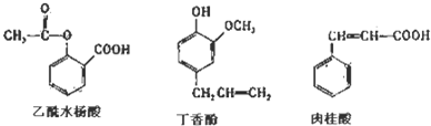 (2)三种化合物中乙酰水杨酸和肉桂酸都含有羧基,可与NaHCO3溶液反应,但丁香酚含有的酚羟基的酸性比碳酸弱,则不能与NaHCO3溶液反应,