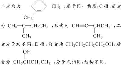 本题解析:A项,二者均为C(CH3)4,属于同一物质;B项,