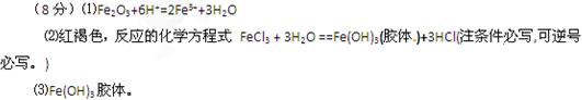 (4)加NaHCO3时,混合液pH值应控制在_______________________。 (5)反应Ⅱ中反应的离子方程式是:___________________。 (6)实际生产中,将反应Ⅱ产生的NO配比一种气体X,混合后重新通入反应Ⅱ中,该设计的目的是________,气体X与NO配比的比例是_____________。 参考答案: 本题解析: 本题难度:困难 3、选择题 检验钢制设备完好性的方法之一是:在被怀疑裂纹处涂上6mol/L的盐酸,过一段时间若观察到有粗线裂纹,表明该处原先有看不见的细裂纹,产生粗线裂纹的主要原因是 参考答案:D 本题解析: 本题难度:一般 4、填空题 从铝土矿(主要成分是Al2O3,含SiO2、Fe2O3、MgO等杂质)中提取氧化铝的两种工艺流程如下: 参考答案:(1)26-2(第1周期元素种类)-8(第2周期元素种类)-8(第3周期元素种类)=8<18(第4周期元素种类),所以Fe位于元素周期表中第四周期,第 VIII族, 本题解析: 本题难度:一般 5、填空题 (8分)⑴取少量Fe2O3粉末(红棕色)加入适量的盐酸,所发生的离子反应方程式 参考答案: 本题解析:略 本题难度:一般 |