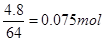 (2)根据反应式可知每消耗1mol甲烷,固体质量就减少4×16g=64g。反应中实际减少了4.8g,所以参加反应的甲烷是