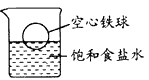 3、选择题 将一空心铁球放入盛有密度为ρ g/cm3.的饱和食盐水的烧杯中,铁球所处位置如下图所示。将下列物质分别加入烧杯中,能使铁球上浮的是