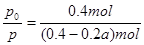 解:开始时no =" 0.4" mol,总压强为160 kPa,平衡时总压强为120 kPa,