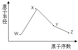 5、填空题 (10分)W、X、Y、Z是四种常见的短周期元素,其原子半径随原子序数变化如图所示。已知W的一种核素的质量数为18,中子数为10;X和Ne原子的核外电子数相差1;Y的单质是一种常见的半导体材料;Z是同周期中非金属性最强的元素。