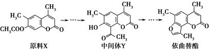 1、选择题 依曲替酯是一种皮肤病用药,它可以由原料X经过多步反应合成。