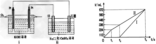 ②理论上ⅱ中两极所得气体的体积随时间变化的关系如坐标图所示(气体体积已换算成标准状况下的体积),写出在t1后,石墨电极上的电极反应式________________;在t2时所得溶液的pH约为________。