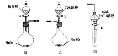 2、实验题 为验证氧化性Cl2>Fe3+>SO2,某小组用下图所示装置进行实验(夹持仪器和甲中加热装置已略,气密性已检验)。