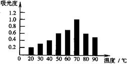 4、选择题 为研究和开发天然食用色素。某研究小组取等量相同品种的红枣,采用溶剂提取红枣中部分红色素,用紫外光谱仪测定不同温度下提取液的吸光度,实验结果见右图。已知吸光度越大,红色素含量越高。下列分析较合理的是