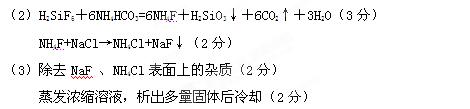 (4)保证H2SiF6能全部反应(2分);防止在加入NaCl后,H2SiF6与NaCl反应生成Na2SiF6沉淀,混入NaF中,影响NaF纯度(2分)