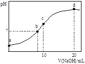 参考答案:D 本题解析: 本题难度:简单 2、选择题 常温下,向20.00mL0.1000mol·L-1(NH4)2SO4溶液中逐滴加入0.2000mol·L-1NaOH溶液时,溶液的pH与所加NaOH溶液体积的关系如下图所示(不考虑NH3·H2O的分解)。下列说法不正确的是 |