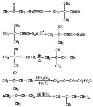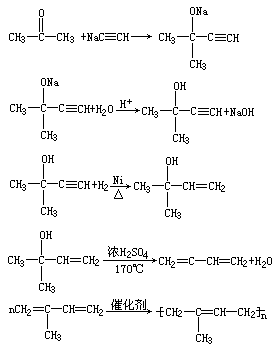 工业上用丙酮为初始原料,通过与乙炔钠等物质反应,可以合成聚异戊二烯,请写出合成的各步反应式。