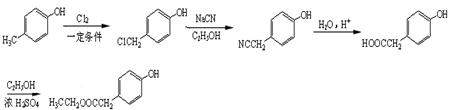 (5)以A和乙醇为主要原料制备对羟基苯乙酸乙酯,主要是使A分子通过反应增加1个羧基,根据所给流程图可知卤素原子可以与NaCN、乙醇反应使分子中增加-CN,然后酸性条件下水解得羧基,再与乙醇反应得目标产物,所以第一步应在A分子的甲基上增加卤素原子。流程图如下: