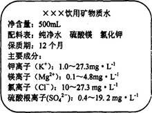 4、简答题 (18分)水是组成生命体的重要化学物质,有关水的反应有很多。(1)水分子的空间构型为___________;水分子自身作用会生成阴、阳两种离子,其中阴离子的电子式是___________?(2)如图是某品牌饮用矿泉水标签的部分内容。请计算一瓶合格的这种矿泉水中硫酸根离子的物质的量不能超过___________。(3)标况下将a L氨气溶于1L水中,得到的溶液密度为b g·cm﹣3。用化学方程式表示氨气溶于水显碱性的原因___________该溶液的物质的量浓度为___________mol·L﹣1。(4)已知M是生活中常见的一种金属,将44.8 g M完全溶于很稀的过量硝酸,向所得溶液中加入足量固体烧碱并加热,放出6.72 L(标准状况)气体。M溶于该很稀的硝酸的离子方程式为___________________。M与水在高温条件下,生成1g气体吸热a kJ,写出该反应的热化学方程式_________________________________。(5)味精是常用的调味品,当前味精生产主要采用淀粉发酵法,其中第一步是使淀粉水解为单糖。①淀粉发生水解反应的化学方程式是_________________________________②实验室中检验淀粉水解产物应选用的试剂可以是___________ (填字母)·A.NaOH溶液、氨水、AgNO3溶液B.H2SO4溶液、氨水、AgNO3溶液C.NaOH溶液、CuSO4溶液D.H2SO4溶液、CuSO4溶液