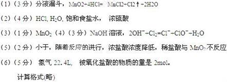 (1)制取氯气时在烧瓶中加入一定量的二氧化锰,通过?(填仪器名称)向烧瓶中加入适量的浓盐酸,写出该反应的化学方程式?。
