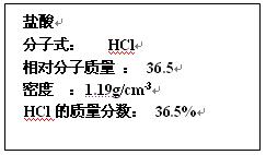 实验室常用的某盐酸试剂瓶的标签上的有关数据如下图,试根据标签上的