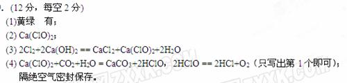 (4)已知H2CO3的酸性比HClO强,若把漂粉精暴露在空气中,请你推测会发生什么反应,写出反应的化学方程式?,根据这一特性,漂粉精的保存方法为?。