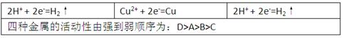 2、实验题 (8分)由A、B、C、D四种金属按下表中装置进行实验,已知用C与B相连作电极放入硫酸铜溶液中B溶解。根据实验现象填表: