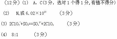 A.A B.B C.C D.D 参考答案:A.氯气与水反应可生成具有漂白性的次氯酸,能使红色花瓣褪色,但氯气本身不能使有色物质褪色,与氯气的强氧化性无关,故A错误; 本题解析: 本题难度:简单 4、填空题 用二氧化氯(ClO2)、铁酸钠(Na2FeO4摩尔质量为166 g·mol-1)等新型净水剂替代传统的净水剂Cl2对淡水进行消毒是城市饮用水处理新技术。ClO2和Na2FeO4在水处理过程中分别被还原为Cl-和Fe3+。 参考答案: 本题解析:略 本题难度:简单 5、选择题 2005年3月29日京沪高速淮安段发生一起特大交通事故,一辆载有液氯的铁罐车因轮胎爆炸造成大量液氯泄漏,给当地居民的生活和环境造成严重污染。下列说法合理的是 参考答案:B 本题解析:氯气没有漂白性,氯气和水反应生成次氯酸具有漂白性,A不正确;氯气能和碱液反应,B正确;氯气有毒,对环境会造成污染,故事故现场必须进行特别的处理,C不正确;在常温下氯气和铁是不反应的,可以用铁罐盛装,D不正确,答案选B。 本题难度:一般 |