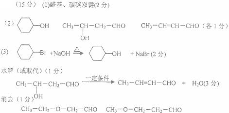 参考答案:(1)消去反应(1分); (2分) ;