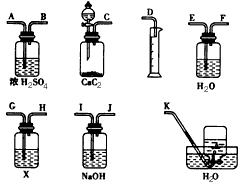 2、实验题 实验室用电石和水反应制备的乙炔气体中含有少量的H2S气体,为了净化和检验乙炔气体,并通过测定乙炔的体积计算电石的纯度,按下列要求填空(注意1X溶液为含溴3.2%的水溶液150 g)。