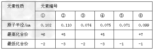 5、推断题  I、表中①~⑥为部分短周期元素的化合价及原子半径元素性质