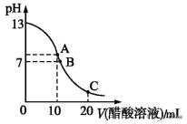 本题解析: A、在C点,CH3COOH过量,以CH3COOH电离为主,溶液呈酸性,c(CH3COO-)>c(Na+)>c(H+)>c(OH-),故A项正确; B、B点时溶液pH等于7,为中性,c(OH-)=c(H+),由电荷守恒得c(CH3COO-)=c(Na+),故B项正确; C、在A点是20mL0.1mol·L-1NaOH溶液和10mL0.2mol·L-1醋酸溶液恰好反应完全,生成的醋酸钠中的醋酸根离子水解使溶液呈碱性,离子浓度的关系应为:c(Na+)>c(CH3COO-)>c(OH-)>c(H+),故C项不正确; D、在C点,由物料守恒可得c(CH3COO-)+c(CH3COOH)=2c(Na+),故D项正确。 考点:考查盐类的水解、离子浓度大小比较 点评:题考查了盐类的水解、离子浓度大小比较,难度中等。解题的关键是掌握好酸碱的反应时量的关系,并根据酸碱的量来分析溶液中离子浓度的大小。