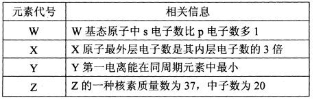 3、填空题 (14分)W、X、Y、Z是四种常见的短周期元素,其原子序数依次增大,其它相关信息如下表所示