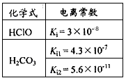 3、选择题 根据下表提供的数据,判断在等浓度的NaClO、NaHCO3混合溶液中,各种离子浓度关系正确的是