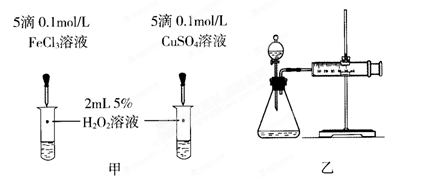 ①定性分析:如图甲可通过观察_________________________,定性比较得出结论。有同学提出将FeCl3改为Fe2(SO4)3更为合理,其理由是_________________________。