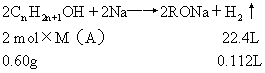 5、计算题 0.60g某饱和一元醇 A,与足量的金属钠反应,生成氢气112mL(标准状况)。求该一元醇的分子式。