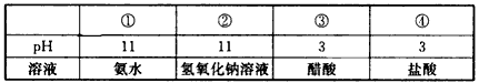 (1)①、②、③、④四种溶液中由水电离出的H+浓度由大到小的顺序是(填序号)______.
