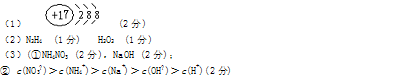(3)A、B、C、D、中的任意三种元素可组成多种化合物,X和Y是其中的两种。X和Y都是既含离子键又含共价键的离子化合物;将X、Y分别溶于水时,X能促进水的电离,而Y能抑制水的电离,X水溶液的pH<7,Y水溶液的pH>7。
