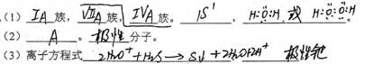 4、填空题 (1)原子核内无中子的元素可放在元素周期表的?族,又根据最高正化合价和负化合价的绝对值相等可放在?族,该元素还可放在元素周期表的?族。它的核外电子排布式为?,它和氧元素可形成的化合物的电子式为?。