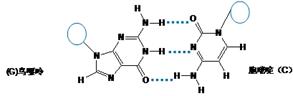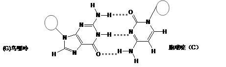 (3)DNA中四种碱基间通过氢键可能的配对方式,用虚线把氢键表示出来