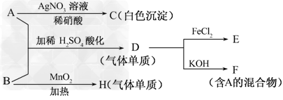 5、推断题 A和B是两种盐,其焰色反应皆为紫色(透过蓝色钴玻璃观察).有关实验及现象如下: