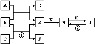 4、填空题 (共12分)物质之间的转化关系如下图,其中A、D、E、F、H为常见单质,其余为化合物,且单质E和单质F在点燃或加热的条件下生成淡黄色的固体,B常温下为液态化合物。