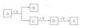 4、填空题 (13分)A、B、C、D、E、X、Y为中学常见的七种物质,它们有如下转化关系(部分产物与反应条件略去):