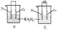 D.甲装置中铜片上有气泡生成,乙装置中的铜片质量减小