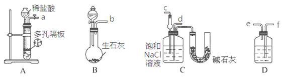 某实验小组,利用下列装置模拟“联合制碱法”的第一步反应。