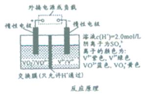 A.放电时当左槽溶液逐渐由黄变蓝,其电极反应式为:VO2+ +e一+2H+=VO2+ +H2O