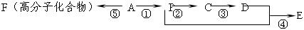 3、填空题 (12分)已知A是气态烃,完全燃烧时产生的CO2和H2O的物质的量之比为1∶1,A的相对分子量小于30,在下图变化中,中间产物C跟葡萄糖一样也能跟新制的Cu(OH)2发生反应产生砖红色沉淀,E有香味,(反应条件未写出)。