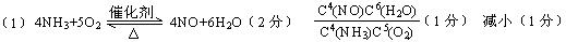 ⑴氨催化氧化反应在一定温度下(水为气体)为正反应放热的可逆反应,写出该反应的化学方程式?和平衡常数表达式K=?,若升高温度,则K的值?(填“增大”“减小”或“不变”)。