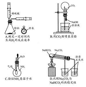 本题解析:在比较Na2CO3和NaHCO3的热稳定性的实验中,因Na2CO3比NaHCO3稳定,应将NaHCO3放在里面的小试管中(温度低,还能先分解,证明不稳定),故D错。